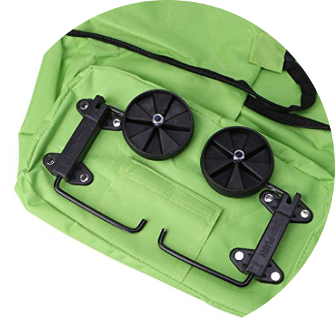 Bought this bag for grocery shopping in downtown Chicago. Needed a bag with good wheels, good holding capacity, and ability to zip close due to rain. All expectations met and it is a work horse. I have carried 12 pack seltzer water, two wine bottles, two large lemonade bottles, meat, cheese, fish, crackers, bread, salad supplies etc... in one trip. I like the outside pocket for my umbrella and sunglasses etc... I have also used this bag to pull two full size camping chairs to outside movies etc... Wheel are excellent and bag bumps up over curbs. Handles (two of them )are strong and good for getting on and off public transportation with a heavy load. Check the different colors on pricing as I got the black and white with good discount.