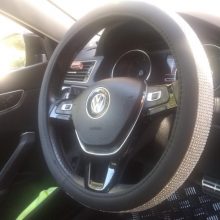 I absolutely love my steering wheel cover. It is so sparkly and fun. It was fairly easy to install compared to others I’ve tried.