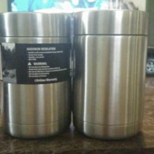 I bought this set for my daughter and her boyfriend. I added their names to it from another vendor. They hold bottles and cans. My daughters drink was left out on the table overnight, and it was still cold.