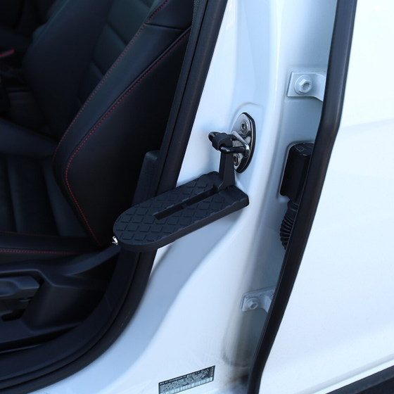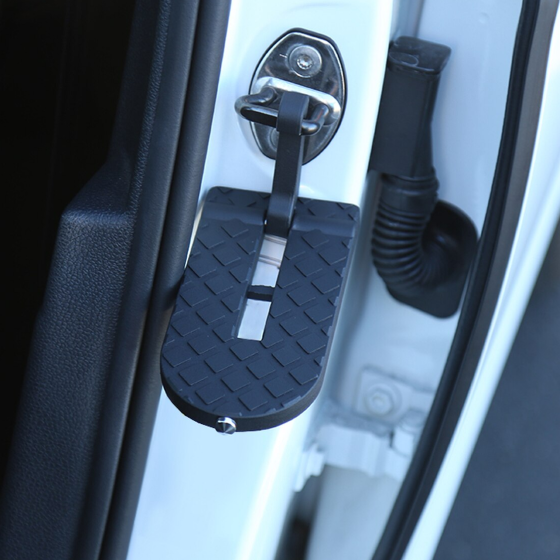 No screws or bolts needed. Your car already has what it takes to hook up this step tool. Every front door on a car has what is known as a striker hook or plate: it’s the D-shaped ring that sticks out. Just hook your Universal Car Footstep onto this, and you’re set. When you’re done doing what you need to do on the car rooftop, simply unhook the step.