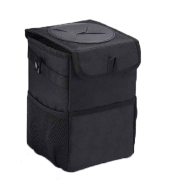 This trashcan works well in our SUV. With three kids and a busy schedule we often eat snacks or food in the car. This is the third trashcan I’ve now bought for a vehicle, and this one they got it right. The size is good and holds quite a bit. The thing I like the most is the top you don’t actually have to undo it or do anything to access the trash can you just push it in the top. My kids broke the last one by stepping on it too many times, and this one actually is elevated off the ground which makes less of a tripping hazard. You can also put a trash liner it so you can just take out the whole bag of trash out quickly and easily. It also had like a bungee cord on it if you didn’t want to use the strap if you wanted to utilize it somewhere else. I put it around my center console so it could be utilized in the backseat.