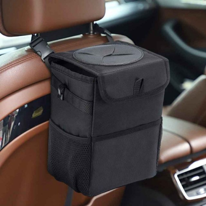 This trash can is so sturdy and durable. The quality is pretty good. It is keeping my car clean from all the trash like old receipts, food covers, beverage cans, etc. It has a waterproof lining inside the can. So that I can easily clean the leftover spilled beverages. It also has multiple pockets. We can store whatever we want in them. Highly recommended for cleanly cars.